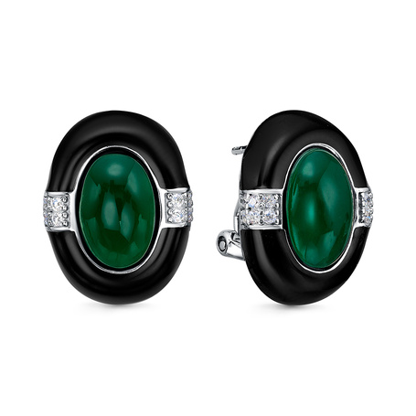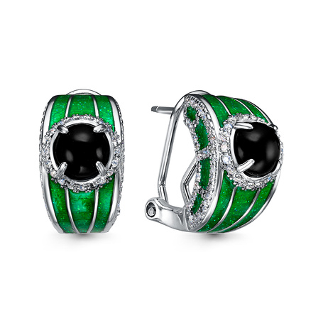 Серьги из серебра 925 пробы с эмалью, ониксом и фианитами