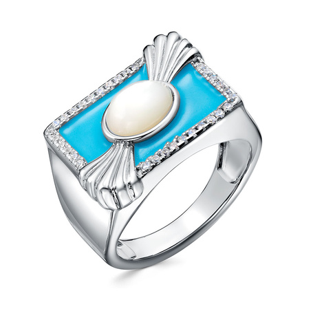 Кольцо из серебра 925 пробы с перламутром, фианитами и эмалью