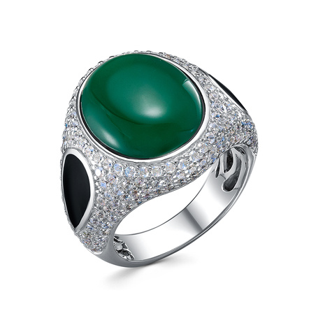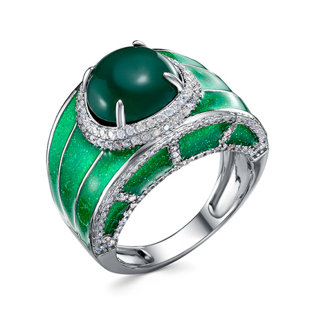 Кольцо из серебра 925 пробы с агатом, фианитами и эмалью