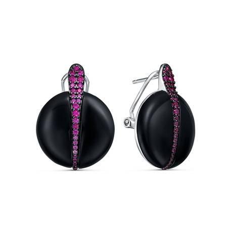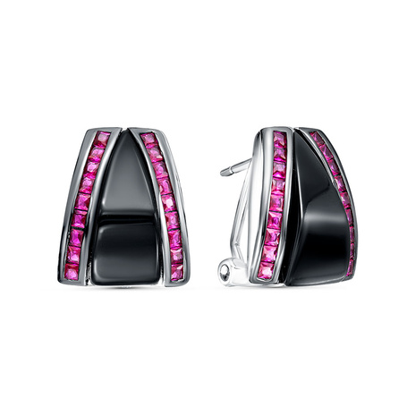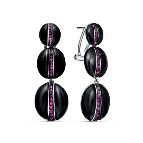 Серьги из серебра 925 пробы с корундами и ониксом
