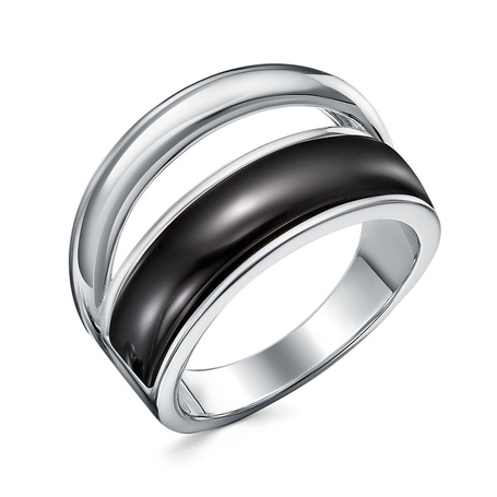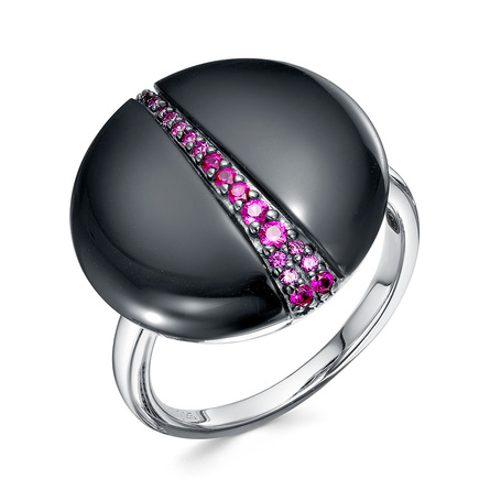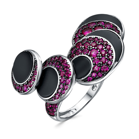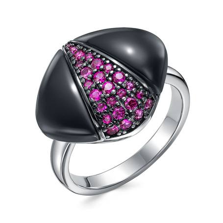 Кольцо из серебра 925 пробы с фианитами, ониксом и эмалью