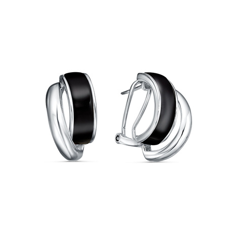 Серьги из серебра 925 пробы с фианитами, ониксом и эмалью