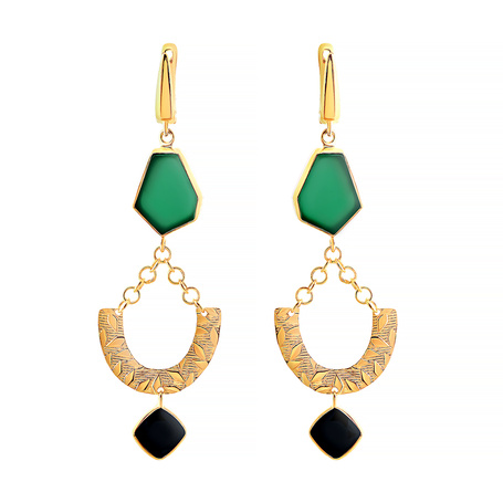Серьги из серебра 925 пробы с ониксом и лунным камнем