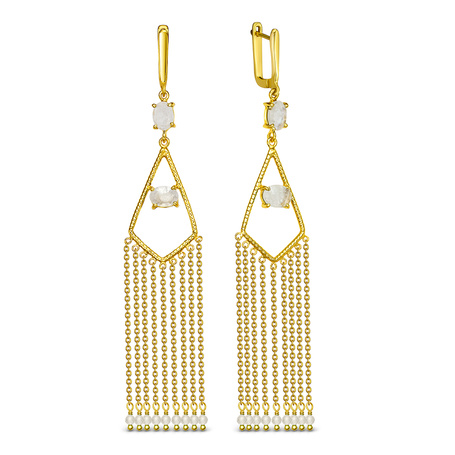 Серьги из серебра 925 пробы с лунным камнем и фианитами