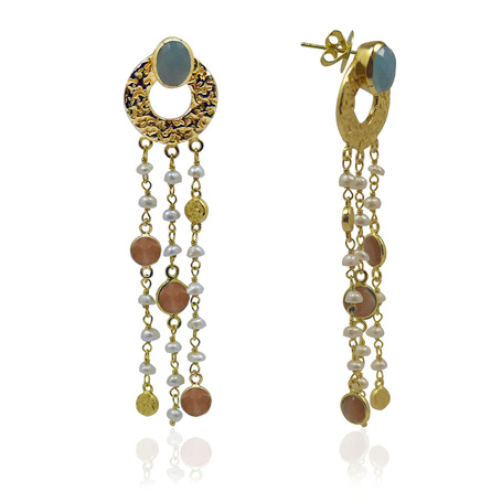 Серьги из серебра 925 пробы с кварцем, лунным камнем, апатитами и жемчугами