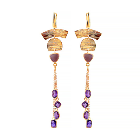 Серьги из серебра 925 пробы с лунным камнем и аметистами
