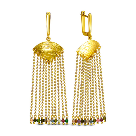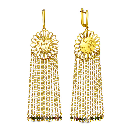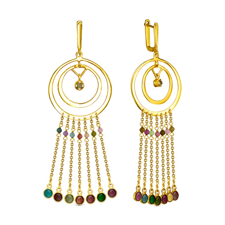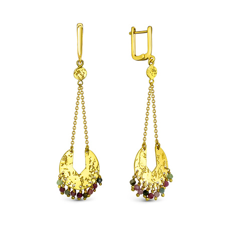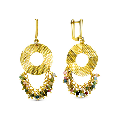 Серьги из серебра 925 пробы с лунным камнем, гранатами, перидотами, турмалинами и агатом