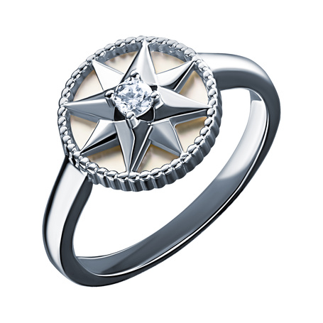 Кольцо из серебра 925 пробы с фианитами и перламутром