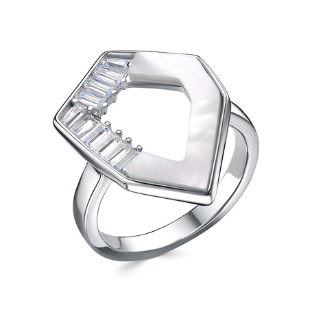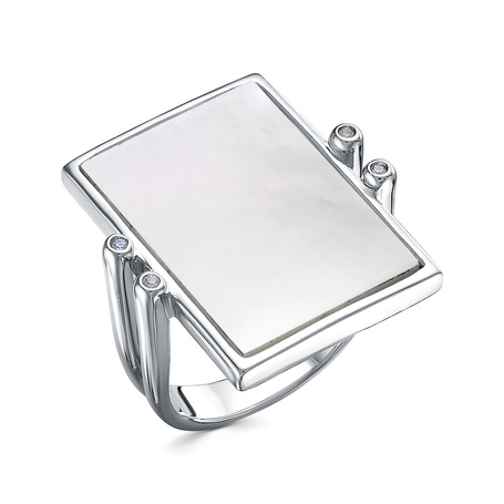 Кольцо из серебра 925 пробы с фианитами и перламутром