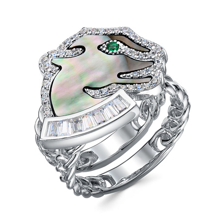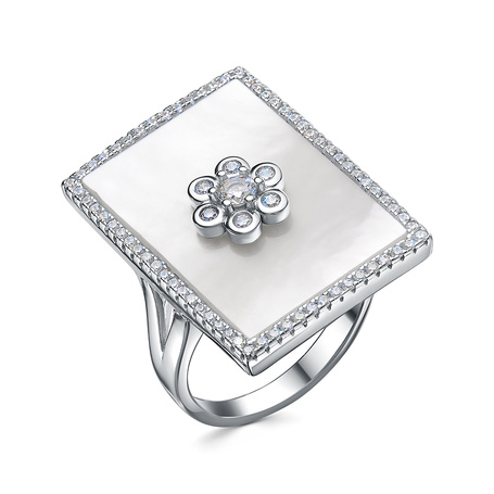Кольцо из серебра 925 пробы с перламутром и фианитами