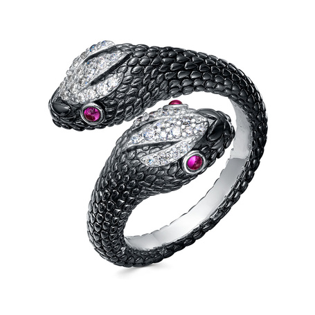 Кольцо из серебра 925 пробы с фианитами и эмалью