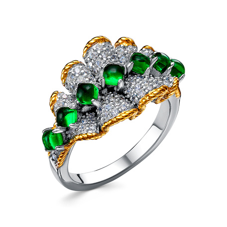 Кольцо из серебра 925 пробы с фианитами и эмалью
