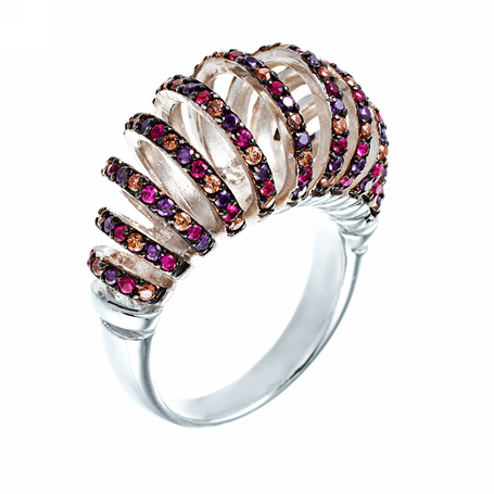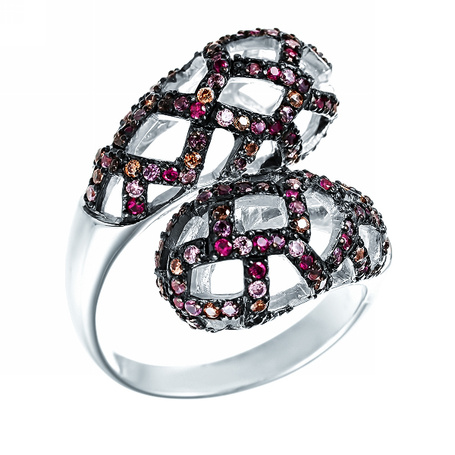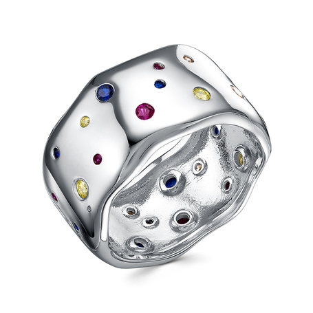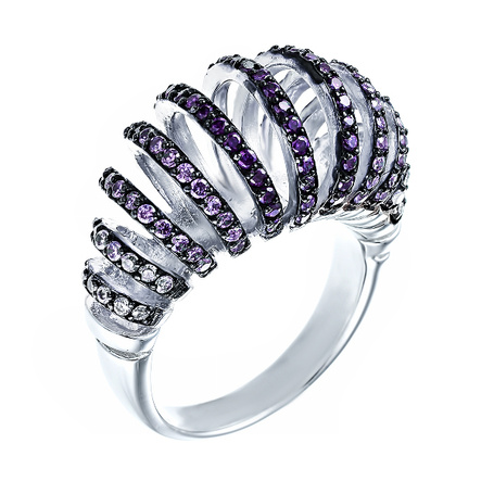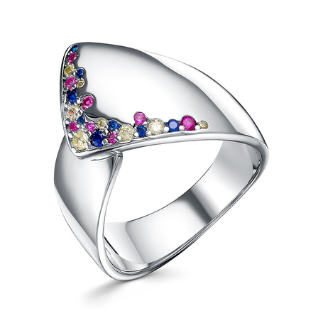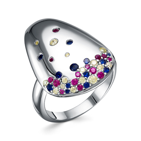 Кольцо из серебра 925 пробы с фианитами и эмалью
