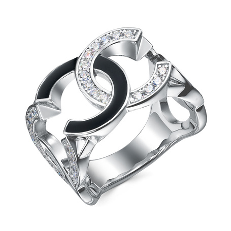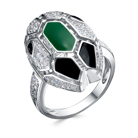 Кольцо из серебра 925 пробы с фианитами и эмалью