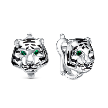 Серьги из серебра 925 пробы с фианитами и эмалью