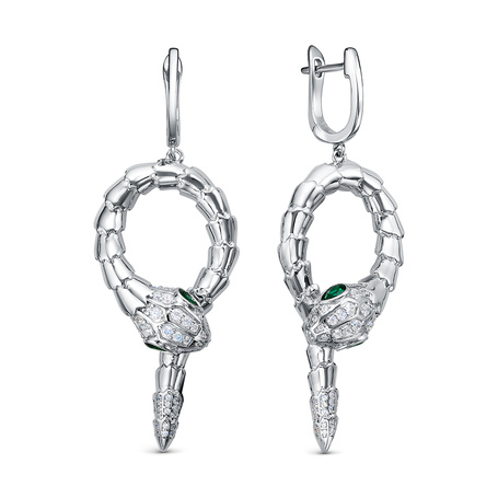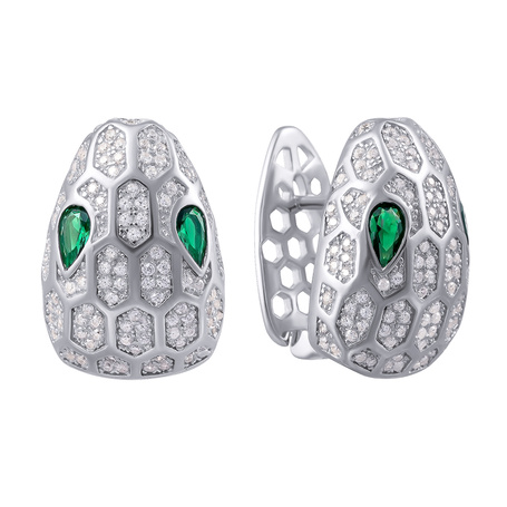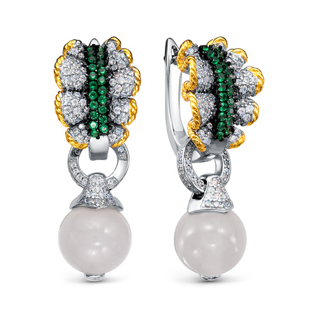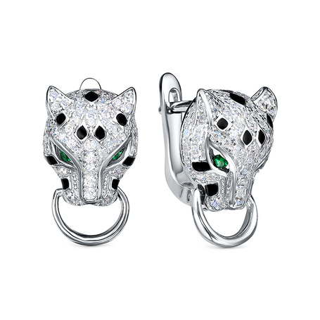 Серьги из серебра 925 пробы с фианитами и эмалью
