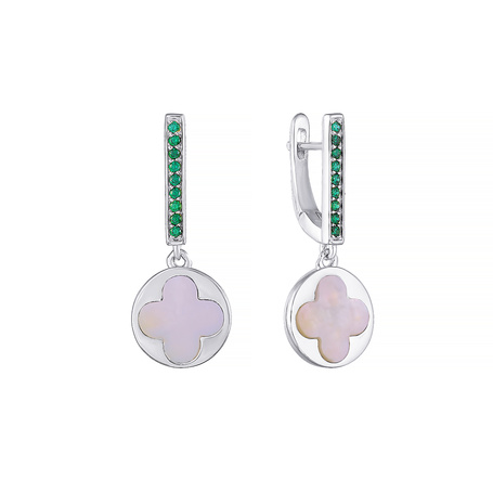 Серьги из серебра 925 пробы с перламутром и фианитами