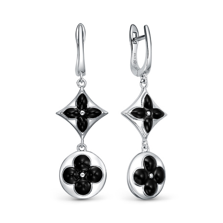 Серьги из серебра 925 пробы с ониксом и фианитами