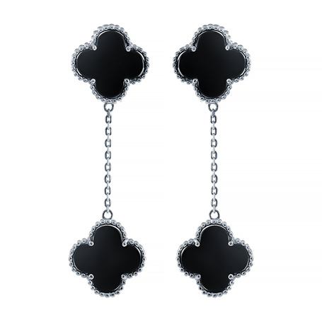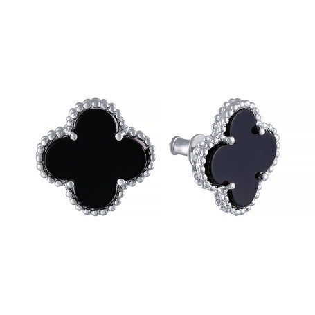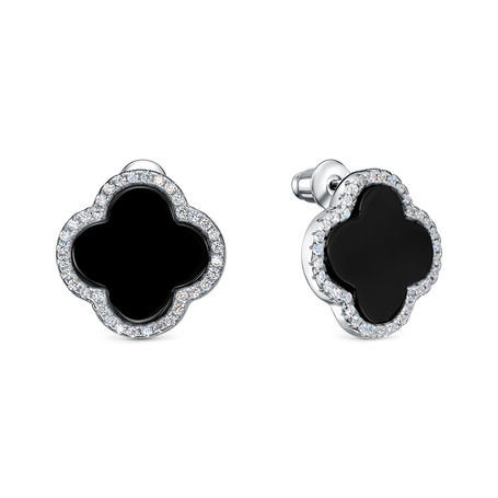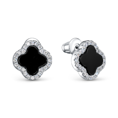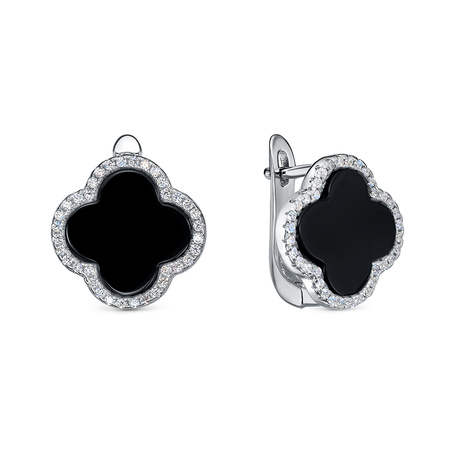 Серьги из серебра 925 пробы с ониксом и фианитами