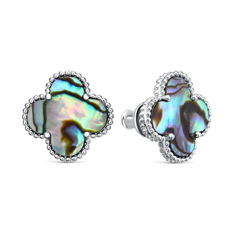 Серьги из серебра 925 пробы с перламутром и фианитами