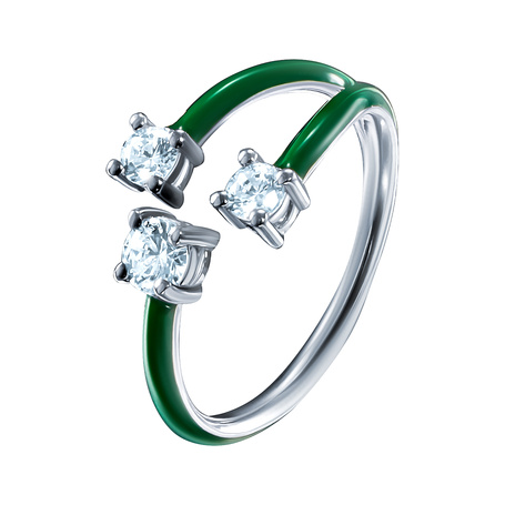 Кольцо из серебра 925 пробы с фианитами и эмалью