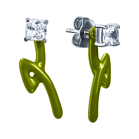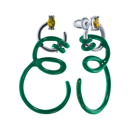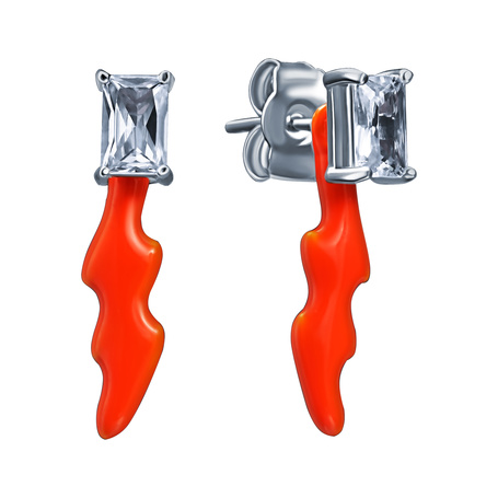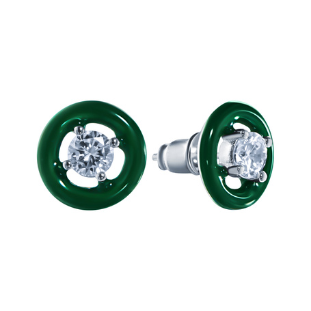 Серьги из серебра 925 пробы с фианитами и эмалью