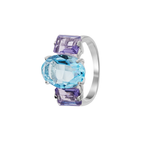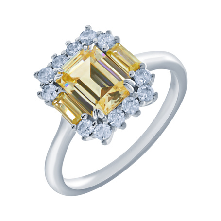 Кольцо из серебра 925 пробы с ювелирным стеклом и фианитами