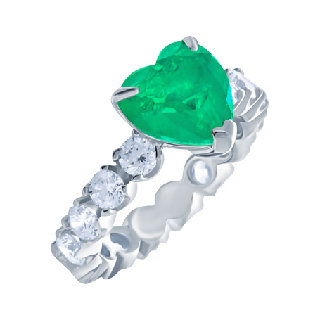 Кольцо из серебра 925 пробы с фианитами и ювелирным стеклом