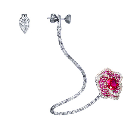 Асимметричные серьги из серебра 925 пробы с рубинами синтетическими и фианитами