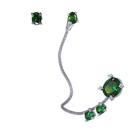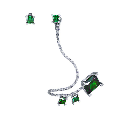 Асимметричные серьги из серебра 925 пробы с фианитами и ювелирным стеклом