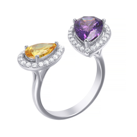 Кольцо из серебра 925 пробы с ювелирным стеклом и фианитами