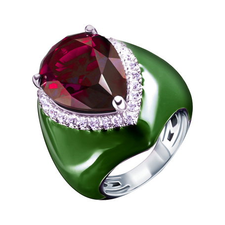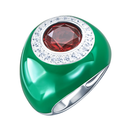 Кольцо из серебра 925 пробы с ювелирным стеклом и эмалью