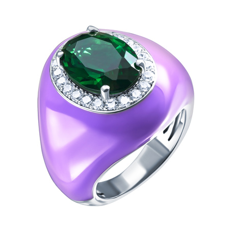 Кольцо из серебра 925 пробы с фианитами и эмалью