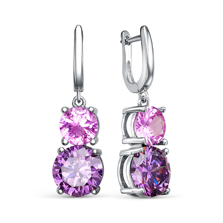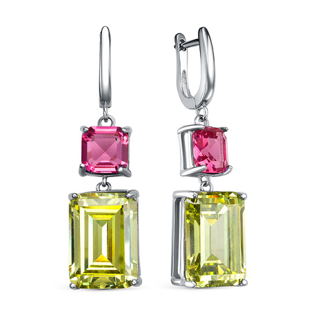 Серьги из серебра 925 пробы с фианитами и ювелирным стеклом