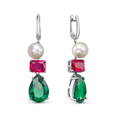 Серьги из серебра 925 пробы с ювелирным стеклом и жемчугами