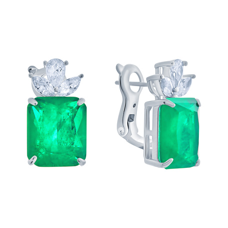 Серьги из серебра 925 пробы с фианитами и ювелирным стеклом