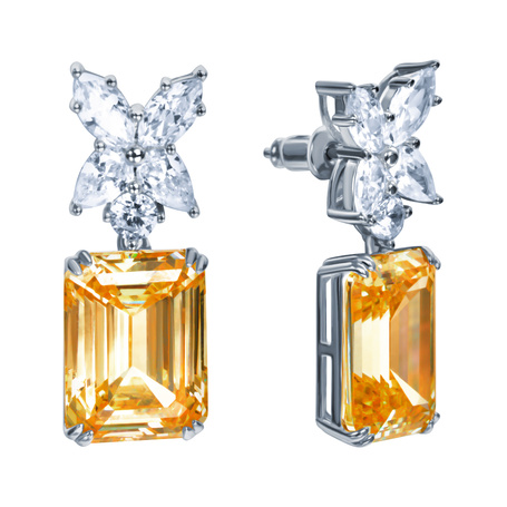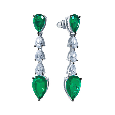 Серьги из серебра 925 пробы с фианитами и ювелирным стеклом