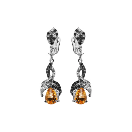Серьги из серебра 925 пробы с цитринами, топазами и шпинелью