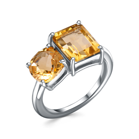 Кольцо из серебра 925 пробы с раухтопазами и цитринами