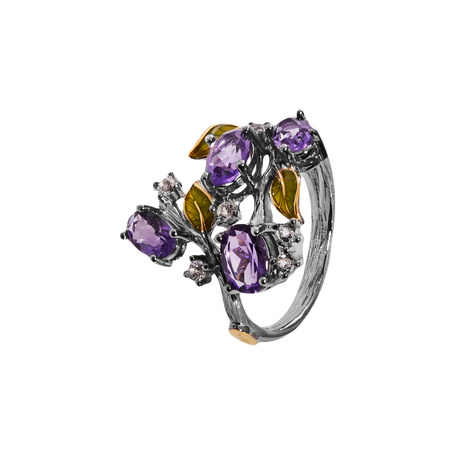 Кольцо из серебра 925 пробы с аметистами, топазами и эмалью