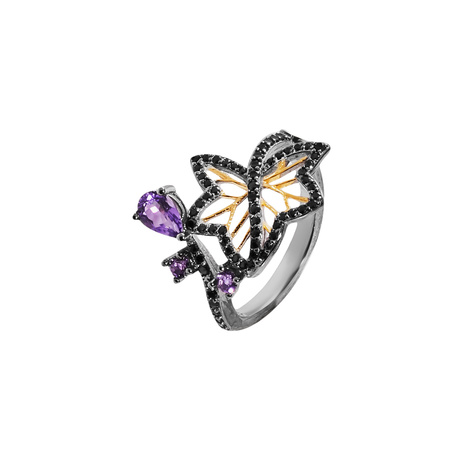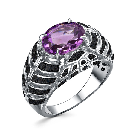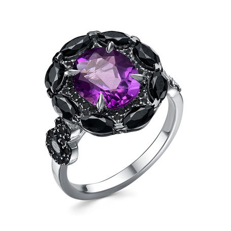 Кольцо из серебра 925 пробы с аметистами и шпинелью