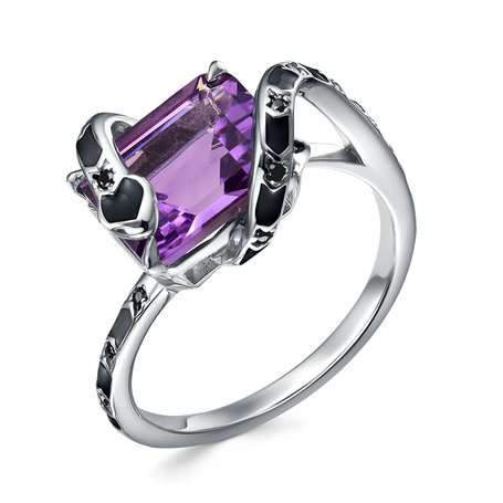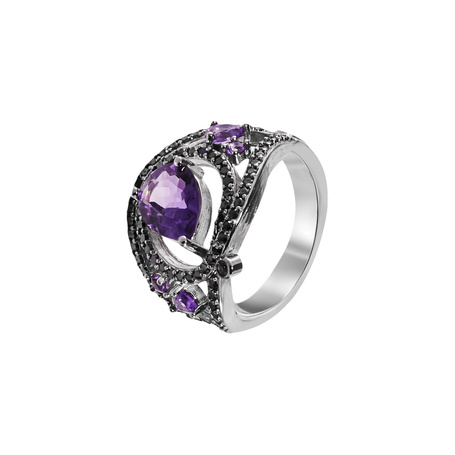 Кольцо из серебра 925 пробы с шпинелью, аметистами и эмалью