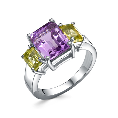 Кольцо из серебра 925 пробы с аметистами, перидотами и шпинелью