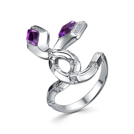 Кольцо из серебра 925 пробы с аметистами