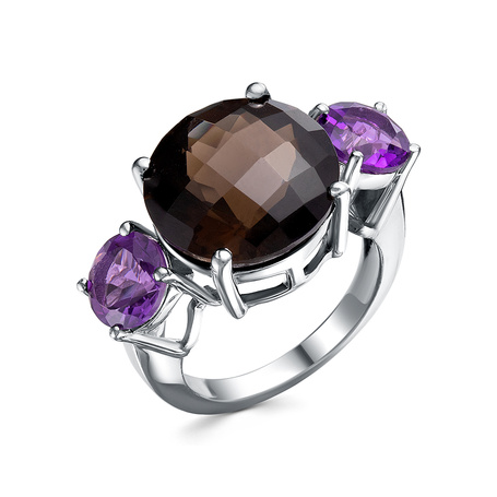 Кольцо из серебра 925 пробы с аметистами и раухтопазами