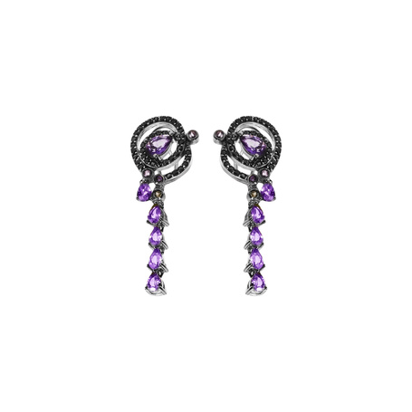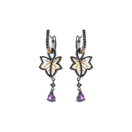 Серьги из серебра 925 пробы с шпинелью, аметистами и эмалью