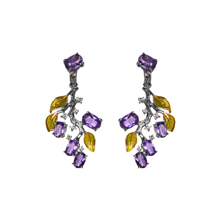 Серьги из серебра 925 пробы с аметистами, топазами и эмалью