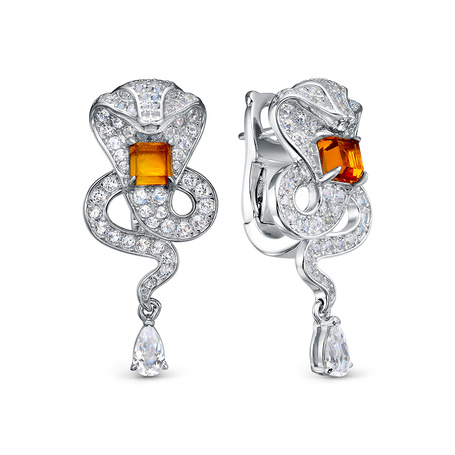 Серьги из серебра 925 пробы с цитринами, гранатами и топазами