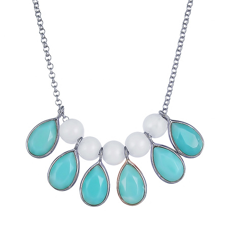 Колье из серебра 925 пробы с амазонитами и жадеитом