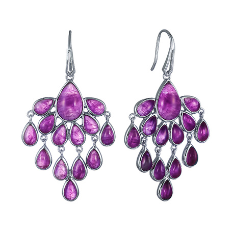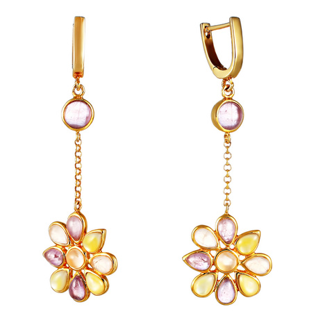 Серьги из серебра 925 пробы с аметистами, перламутром и кварцем
